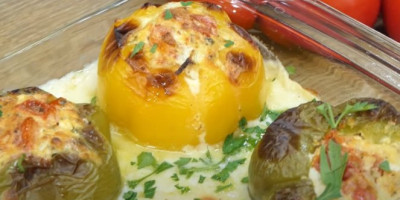Očistite paprike od semenki, pa ih poređajte u pleh. Feta sir izmrvite u činjiji, pa mu dodajte rendani sir, jaja, seckani luk i paradajz i začiniti biberom i origanom.
