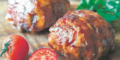U činiji sjediniti junetinu, prezle, rendanu gaudu, jaje, izgnječen čen belog luka, peršun, so i biber, pa napraviti ćufte. Svaku čvrsto obmotati tanko sečenom slaninom, pa ređati na pleh obložen papirom za pečenje. Peći u rerni na 200 stepeni 25-30 minuta, uz povremeno okretanje. Poslužiti dok je toplo.