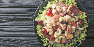 U činiju staviti spanać, dodati na tanke kriške isečene kruške, grožđe, izmrvljenu gorgonzolu i grubo usitnjene orahe.