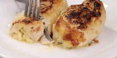 Pomešajte majonez i senf, pa premažite svaku šnitu. U posebnoj činiji izmešajte kačkavalj, beli luk i peršun, pa stavite na pileća prsa i umotajte ih.