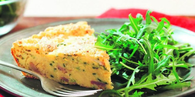 Povežite sve zajedno u gustu smesu, pa prebacite u posudu za pečenje podmazanu maslacem. Pospite izrendanim sirom.