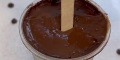 Čokoladu istopite, pa je ulijte po ivicama plastične čaše i ostavite da se stisne u frižideru. Umutite pavlaku za kuvanje i mleko, pa dodajte u čašu, preko sipajte kremić, dodajte još malo smese sa pavlakom i mlekom, pa "zatvorite" topljenom čokoladom.
