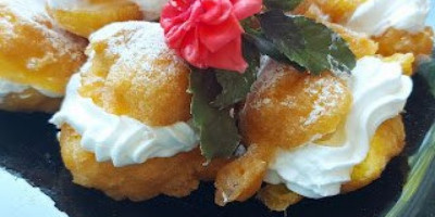 Vaditi na salevetu, pa umututi šlag, svaku krofnu raseći na pola i puniti šlagom pomoću šprica. Posuti prah šećerom.