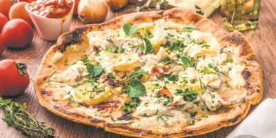 U mlakoj vodi razmutiti kvasac i šećer, ostaviti da nadođe, pa dodati u brašno pomešano sa malo soli. Dodati ulje i zamesiti testo. Ostaviti na toplom da nadođe i da se udvostruči. Razvaljati oklagijom i prebaciti na pleh. Pomešati krem-sir sa parmezanom, izgnječenim belim lukom i majčinom dušicom. Premazati testo, odozgo rasporediti pančetu i krompir isečen na kolutove, posuti sa malo rendane gaude, te peći u rerni na 250 stepeni desetak minuta.