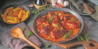 U većem tiganju zagrejati ulje, pa dobro propržiti iseckan crni luk. Dodati iseckane babure i tika masala pastu (mešavina začina, može se naći u bolje snabdevenim prodavnicama), mešati pet minuta, pa ubaciti piletinu isečenu na komade. Zatim dodati usitnjeni pelat, paradajz pire i šolju i po vode, poklopiti i lagano krčkati 30 minuta. Umešati pavlaku i jogurt, posoliti i pobiberiti, začiniti majčinom dušicom, te krčkati još pet minuta.