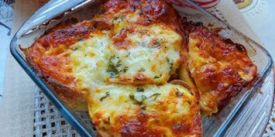 Puniti ostatkom nadeva odozgo i obilno narendati kačkavalja. Peći u rerni na 220 stepeni C oko 20 minuta.
