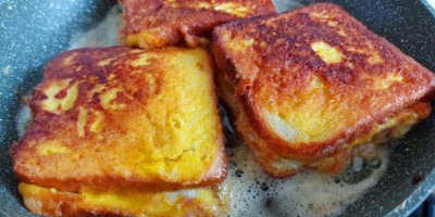 Spremljen nadev premazati, pa dodati odozgo drugo parče hleba i pritisnuti.