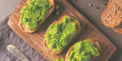 Grašak skuvati u slanoj, ključaloj vodi, da lepo omekša, pa ga ocediti i staviti u blender. Dodati oceđene leblebije iz konzerve, maslinovo ulje, potisnuti beli luk, so i biber, pa sve dobro izmiksati. Umešati sok od limuna, namazati na prepečen hleb, začiniti po ukusu i odmah poslužiti.