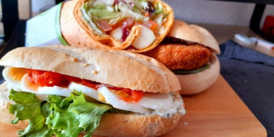 Dodati jaja, sjediniti viljuškom, pa narendati kačkavalj. Pečenicu iseći na kockice, dodati u smesu sa jajima i sirom, a onda i ajvar i origano i dobro promešati. Svež paradajz iseći na kolutove. Hleb poređati u pleh obložen papirom za pečenje.