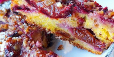 Odozgo drugi deo šljiva. Posuti vanilin šećer i šaku seckanih oraha.