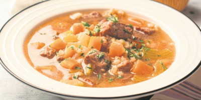 Izrezati junetinu na manje kockice i staviti da se kuva (ili propržiti). U drugoj šerpi na puteru desetak minuta propržiti sitno seckani luk, šargarepu i celer. Dodati krompir sečen na kockice i sve naliti vodom. Kuvati na laganoj vatri dok povrće ne omekša, pa u njega dodati i meso. U činiji pomešati griz, malo vode i žumance. Mešavinu sipati u supu uz neprestano mešanje, dok se supa ne zgusne. Začiniti još, po ukusu.