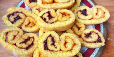 Pleh od rerne obložiti pek papirom, pa rasporediti testo. Peći na 200 stepeni oko 15 minuta. Jednu polovinu biskvita premazati jednim džemom. Drugu stranu drugim džemom.