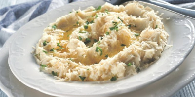 Karfiol oprati, očistiti, iseći na cvetove, pa kuvati u slanoj ključaloj vodi dvadesetak minuta, odnosno dok ne omekša. Karfiol zatim ocediti, dodati potisnuti beli luk, posoliti, pobiberiti, te umešati ulje, mleko i omekšali maslac. Sve dobro izmiksati štapnim mikserom. Na kraju umešati sok od pola limuna i sitno seckani peršun, te odmah poslužiti.