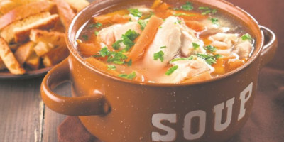 Na kraju dodati kuvanu piletinu, posoliti, pobiberiti i začiniti po ukusu, pa poslužiti dok je toplo.