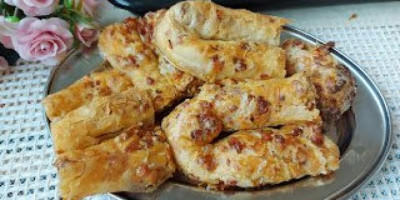 Saviti sa jedne, pa sa druge strane u rolnicu, pa preseći razvučeni deo na sredini da se dobiju dve rolnice. Uviti u krug ili po obliku tepsije koju obavezno premažite uljem. Tako i drugi deo testa.