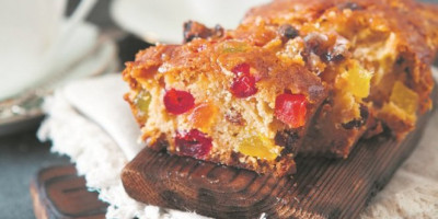 Pomešati brašno, šećer, prašak za pecivo, so i vanilin-šećer. Zatim dodati mleko, omekšali maslac i umućena jaja. Sve dobro promešati da ne bude grudvica. Dodati brusnice, iseckano kandirano voće i izrendanu koru limuna. Izliti u kalup obložen papirom za pečenje i peći na 200 stepeni oko 45-50 minuta.