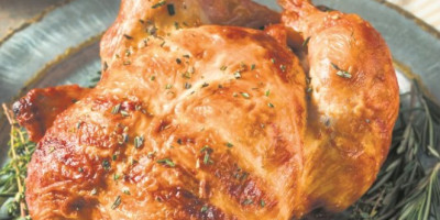 Pomešati sirće, šećer, sveže ceđeni sok limuna, senf, ulje, beli luk u granulama, ruzmarin, majčinu dušicu i origano. Pile dobro oprati i prosušiti kuhinjskim ubrusom, staviti na pleh obložen papirom za pečenje, pa ga posoliti spolja i iznutra. Dobijenom marinadom preliti piletinu i staviti je u frižider da odstoji najmanje četiri sata. Peći u rerni na 200 stepeni oko sat vremena, odnosno dok piletina ne dobije lepu boju sa svih strana. Poslužiti dok je toplo.