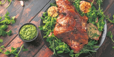 Ruzmarin i beli luk sitno iseckati, staviti u manju posudu, dodati maslinovo ulje i rendanu koru limuna, pa promešati. Jagnjetinu posoliti i pobiberiti, te dobro natrljati pripremljenom marinadom.