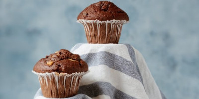 U činiji pomešati sveže ceđeni sok dve pomorandže i rendanu koru, pa dodati sok od pomorandže i promešati. Zatim dodati jaje i ulje, pa sjediniti. U drugoj posudi sjediniti brašno, prašak za pecivo, sodu bikarbonu, so, kakao i šećer. Dodati smesu sa pomorandžom, pa još jednom promešati. Izliti u podmazane kalupe za mafine i peći u rerni na 190 stepeni 20-25 minuta.