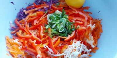 Šargarepu i jabuku izrendati na rende. Luk iseći sitno .Posoliti i iscediti ceo limun.