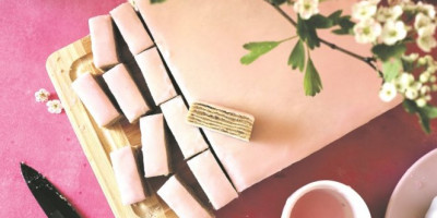 Šećer i vodu pomešati u šerpi, kuvati dok ne proključa, pa dodati omekšali maslac. Mešati dok se ne istopi, skloniti sa vatre, dodati orahe i sve dobro sjediniti. Dobijenom smesom premazati kore i složiti tortu (poslednju koru ne filovati). Prekriti papirom za pečenje, odozgo pritisnuti knjigom i staviti u frižider da prenoći. Sutradan izmiksati šećer u prahu sa vodom i bojom za kolače, premazati tortu, vratiti u frižider da se glazura stegne, pa seći na štanglice i poslužiti.