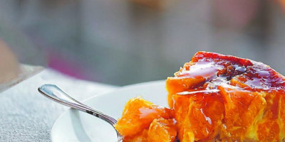 Pažljivo sjedinite, izlijte preko mandarina i pecite oko pola sata u rerni zagrejanoj na 180 stepeni. Kad je kolač gotov, neka se hladi desetak minuta, pa ga okrenite naopačke i prekrijte otopljenom marmeladom.