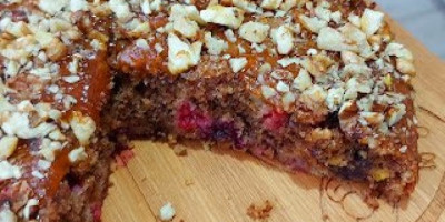 Dodati brašno i prašak za pecivo prosejani, ulje, koricu limuna seckane urme izmešane sa malo šećera u prahu da se ne slepe, koricu naprandže i dobro ozjednačiti.