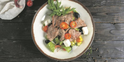 Govedinu (ili drugo meso po izboru) iseći na manje komade i staviti u činiju. Dodati iscepkane listove zelene salate, čeri paradajz, maslinke, na kocke isečenu fetu, na trake isečenu baburu i malo mirođije. Preliti maslinovim uljem i balzamikom, posoliti i pobiberiti, promešati i staviti u frižider da odstoji dva sata, da se svi ukusi sjedine.