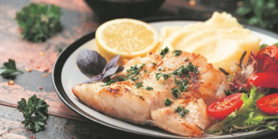 Pomešati sitno seckan beli luk i peršun, maslinovo ulje i sok od limuna. Filete ribe posoliti i pobiberiti, premazati pripremljenom smesom, staviti u pleh obložen papirom za pečenje, te peći u rerni na 180 stepeni 20 minuta. U međuvremenu krompir oguliti, iseći na komade, staviti u šerpu, naliti vodom, posoliti i kuvati dok ne omekšaju. Potom ih ocediti, dodati margarin i mleko, pa izmiksati u pire. Poslužiti uz filete i salatu po izboru.