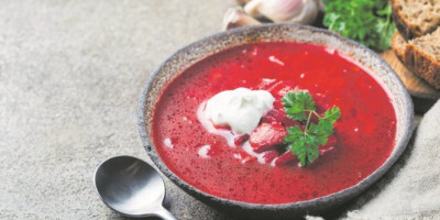Cveklu umotajte u foliju i ispecite je u rerni na 250 stepeni oko 45 minuta ili dok ne omekša. U međuvremenu u šerpi propržite krompir, crni luk i šargarepu. Nalijte vodom, posolite i pobiberite i kuvajte dok povrće ne omekša. Dodajte na kockice nasečenu cveklu i blenderom sve sameljite u pire. Vodom razredite do željene gustine i još jednom samo kratko prokuvajte. Poslužite uz naseckani peršunov list i kriške ili sok limuna po ukusu.