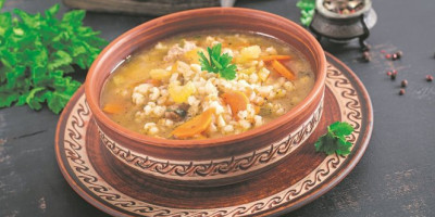 Ječam i sočivo potopite veče pre u hladnoj vodi u dve odvojene posude. Na maslinovom ulju prodinstajte luk i praziluk. Dodajte im na kockice naseckanu šargarepu i papriku, kao i lovorov list i mlevenu papriku. Posolite i dinstajte desetak minuta. Dodajte oceđeni ječam, pasirani paradajz i vodu da prekrije sve sastojke. Kada je ječam napola kuvan, dodajte sočivo. Po potrebi dodajte još tečnosti. Kada je sočivo kuvano, varivo je gotovo. Dodajte peršun i poslužite.