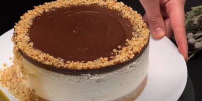 Kada se torta stegne, skinite obruč i pospite je seckanim kikirikijem kako bi bila još ukusnija.