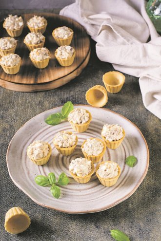 Tunjevinu ocediti, pa staviti u činiju. Dodati iseckana kuvana jaja, celer, crni luk, mirođiju, senf, majonez, so i biber. Sve dobro sjediniti, pa ostaviti da odstoji u frižideru sat-dva. Dobijenom smesom napuniti korpice i odmah servirati.