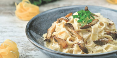 Posolite i pobiberite, pa dinstajte još desetak minuta. Dodajte testeninu, promešajte, pospite rendanim parmezanom i služite.