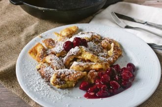 Postepeno dodajte brašno, mleko i rastopljeni maslac, pa umućen sneg od belanaca i na kraju proceđeno suvo grožđe. U tiganju na malo maslaca sipajte ovu smesu debljine oko centimetra. Kada dobije zlatnobraon boju, okrenite, pa opet zapecite i viljuškom je usitnite.