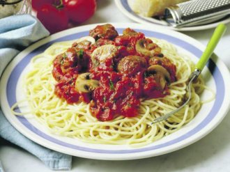Sos prelijte preko oceđene testenine, pospite peršunom i origanom i služite.
