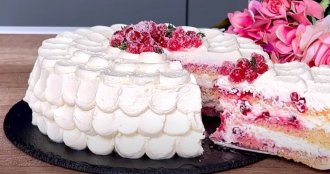 Kem sir, šećer u prahu i slatku pavlaku umutite, pa premažite celu tortu i ukrasite dobijenim kremom, a na vrh stavite one brusnice što ste uvaljali u šećer.