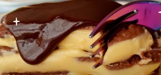 Ponovo sipajte celu smesu u šerpu i kuvajte dok se ne zgusne, uz neprestano mešanje. Ohladite malo na sobnoj temperaturi, pa pokrijte folijom i stavite u frižider.