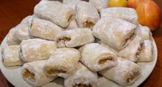Oklagijom ga razvucite na debljinu oko pola centimetra, isecite na pet jednakih traka i svaku po sredini napunite filom od jabuka. Preklopite ivice tako da dobijete manji rolat, a potom svaki isecite na štrudlice dužine oko 3 cm.