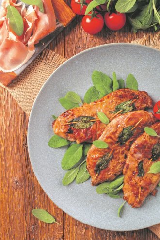 Šnicle istanjiti tučkom za meso, te posoliti i pobiberiti. Na svaku šniclu staviti po list sveže žalfije, prekriti tanko sečenom svinjskom pršutom, pa meso izlupati malo dlanovima, da se pršuta zalepi. Uvaljati u brašno i pržiti u tiganju na zagrejanom ulju dok ne porumeni. Izvaditi i staviti sa strane, a u tiganj ubaciti maslac, so, biber, belo vino i preostalu žalfiju. Mešati dva-tri minuta, pa preliti meso i poslužiti.