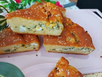 Izmešati seckan luk, sir seckana jaja i rastopljen maslac.