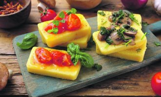 Stavite je u frižider i ostavite da se dobro stegne. Secite palentu na deblje šnite i pržite na dobro zagrejanom ulju. Odozgo stavite dinstane pečurke, paradajz ili papriku i služite kao toplo predjelo.