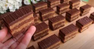 Podelite je na 2 jednaka dela. U jedan deo dodajte kokos i dobro sjedinite, a u drugi dodajte čokoladu istopljenu na pari i dobro sjedinite. Tepsiju obložite pek papirom, pa sipajte pola količine crne smese i poravnajte, preko sipajte pola količine bele smese i opet poravnajte.