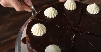Sipajte smesu u kalup prečnika 26 cm, koji ste obložili pek papirom, poravnajte i pecite u zagrejanoj rerni na 170 stepeni oko 60 minuta, na gornjoj rešetki. Istopite čokoladu, šećer i vodu na pari. Gotovu koru izvadite iz kalupa, pa isecite sam vrh i prelijte istopljenom čokoladom. Služi se sa nezaslađenim šlagom.
