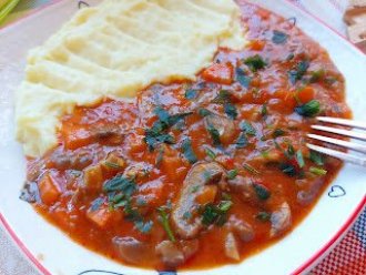 Dodati seckan beli luk, instant pečuraka, ajvar, začin, kuvani paradajz.
