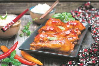 Pomešati ulje, susamovo ulje, med, soja sos, kečap, čili sos, iseckan beli luk, malo rendanog đumbira, so, biber i začine po ukusu. Dodati batake, prekriti folijom, pa marinirati u frižideru najbolje dva-tri sata, a najmanje pola sata. Batake potom ocediti, premestiti u pleh obložen papirom za pečenje, pa peći u rerni na 180 stepeni 30 minuta. Okrenuti meso, pa peći još pola sata.