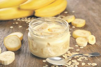 Jaja penasto umutiti sa šećerom, pa dodati mleko i dobro izmiksati. Tri banane propasirati, dodati u smesu, pa sjediniti. Kuvati na pari uz neprekidno mešanje dok smesa ne počne da se zgušnjava. Sipati u posude, ukrasiti sa još malo svežih banana, pa ohladiti i poslužiti.