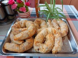 Sve izmešati, pa dodati ml. biber. Na sto raširiti jednu gotovu tanku koru, premazati uljem, pa dodati drugu koru i staviti 2-3 kašike kupusa i raširiti po celoj kori. Uviti u rolnicu i saviti u puža.
