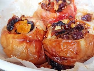 Jabuke dobro oprati, pa sredinu izdubiti. Seckano koštunjavo voće i suvo voće izmešati i napuniti jabuke.
