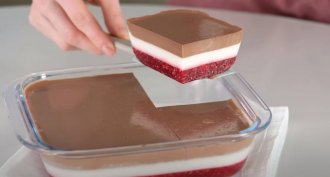 Stavite u frižider da se stegne. U šerpu sipajte mleko, pa dodajte šećer i želatin.